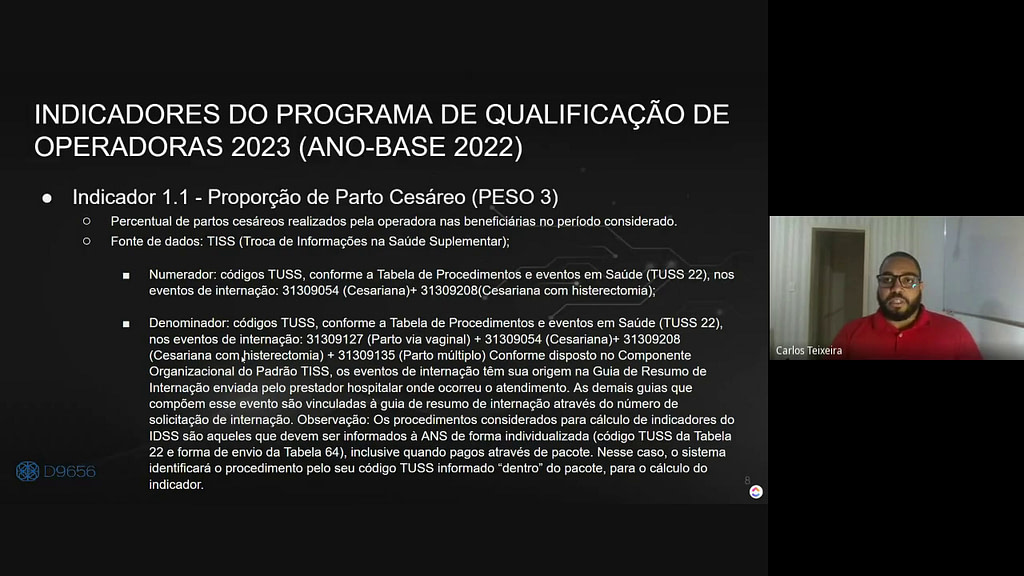 Seguindo as recomendações, as avaliações e o envio dos dados, sem divergências. Cada informação tem seu período e sua entrega específica. Assim, podemos trabalhar com os dados enviados e incorporá-los. A partir desse ponto, iniciamos o trabalho nos indicadores do programa de qualificação das operadoras, usando as fontes de dados o monitoramento TISS.